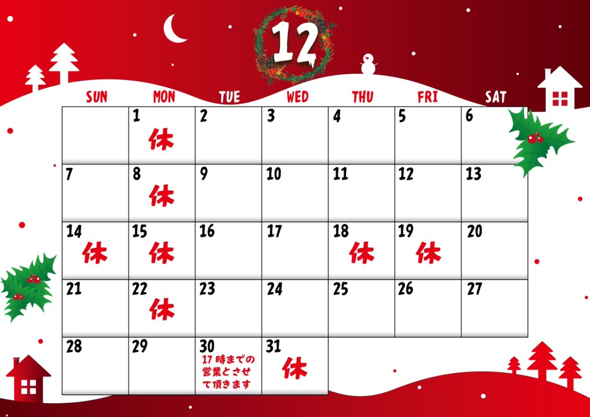 12月の営業日は上のようにさせていただきます。