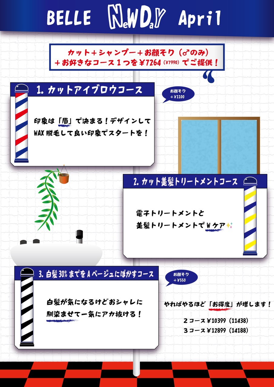 +お顔そり(メンズ限定、①は+¥1,100、③は+¥550にて)